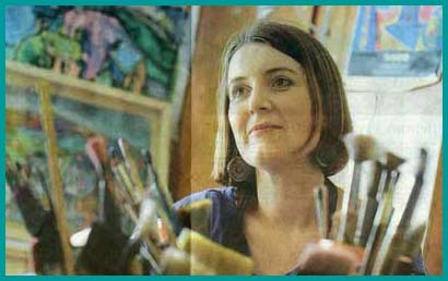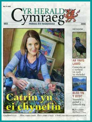 Mae holi Catrin os ydi hi’n mwynhau paentio fel gofyn i aderyn os yw’n hoffi hedfan. Mae ei dawn mor naturiol a hynny, ac mae’n deg dweud bod Catrin yn byw i weithio.